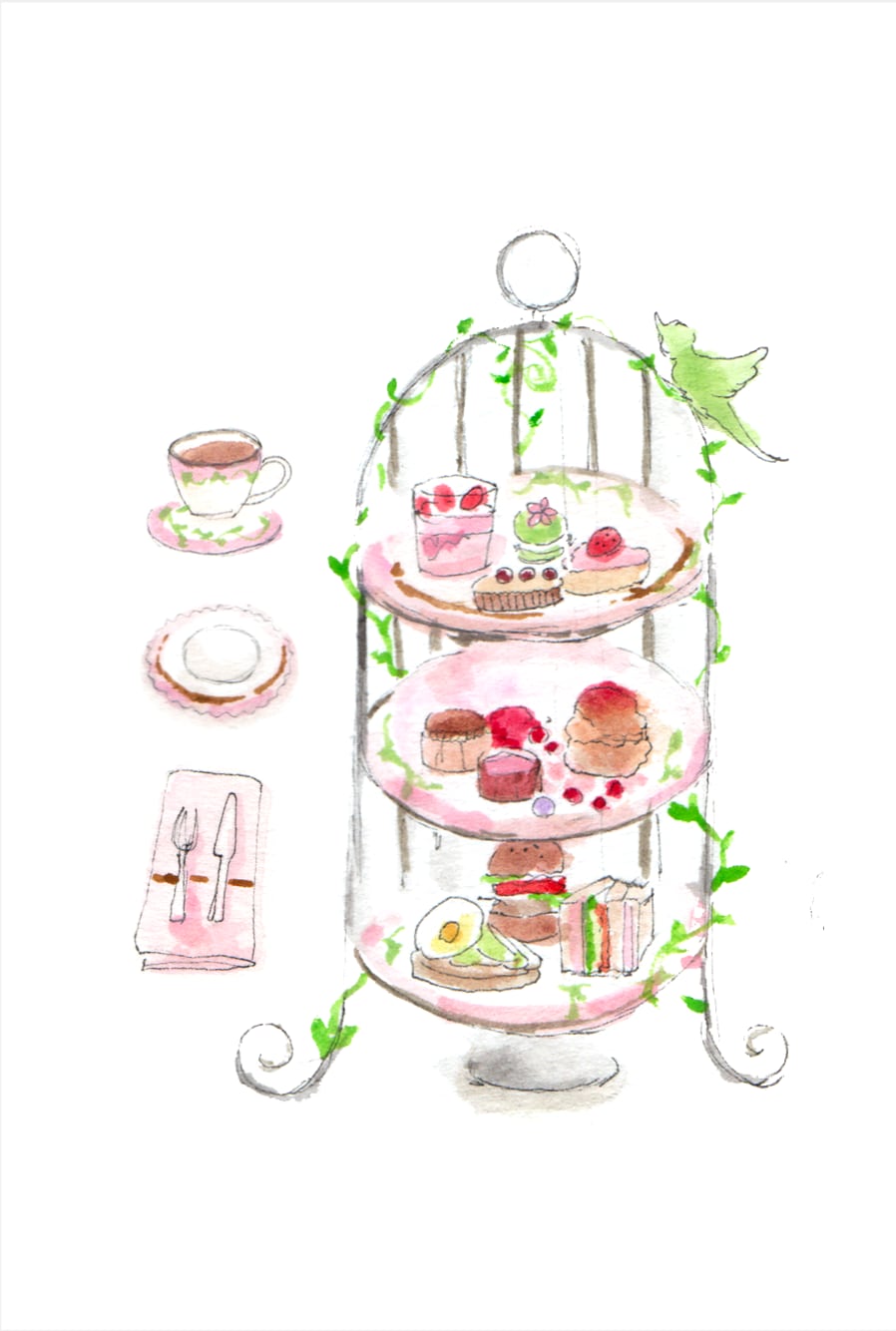はがきサイズアートプリント《鳥籠のアフタヌーンティー》